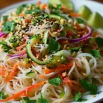 There’s nothing quite like a refreshing bowl of Asian Noodle Salad with Ginger-Lime Dressing to awaken your senses. Imagine twirling tender rice noodles around your fork, feeling their silky texture envelop your tongue. Each bite bursts with the crunch of fresh vegetables, each one adding its unique tale: the cool, crispness of cucumber, the sweet vibrancy of bell pepper, and the earthy notes of shredded carrot. Drizzled with a zesty ginger-lime dressing, this dish sings with bright, tangy flavors that dance playfully across your palate.