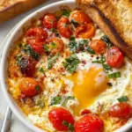 As you delve into this impressive dish, you’ll discover an enchanting blend of Mediterranean essence; the saltiness of feta dances playfully with vibrant tomatoes while the eggs provide a comforting embrace of richness. The gentle crack of the yolk releases a cascade of silky gold, enveloping your taste buds in a creamy bliss. The beautiful contrast of the warm, roasted elements against the fresh herbs that punctuate each serving creates an experience that is equally satisfying to the eyes and palate.