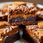 Indulge in the rich, fudgy texture of Biscoff Brownies, featuring a smooth caramel-like cookie butter center and crunchy cookie crumbles.