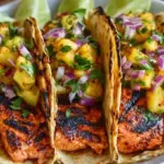 Picture the gentle hiss of salmon sizzling on the grill or in the oven, the aroma wrapping around you like a comforting hug as you mix together the salsa, each ingredient harmonizing to create a fresh, flavorful burst. The tartness of the pineapple, the heat of the jalapeño, and the earthy taste of cilantro mingle joyfully, ready to crown your soft tortillas with an explosion of color and vibrancy. This is not just a meal; it’s an invitation to gather around the table, share stories, and relish every delicious moment together.