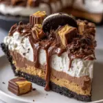 As you lift your fork, the first bite reveals a delightful crunch from the Oreo base, giving way to the smooth, rich chocolate filling that melts on your tongue. The peanut butter layer delights with its creamy richness, enveloping your senses in a nutty embrace that goes unparalleled. You can’t help but close your eyes for just a moment, savoring the interplay of flavors as they dance together, weaving an enchanting story of indulgence. The subtle aroma of chocolate mixed with the warm notes of peanut butter wafts through the air, inviting everyone around you to come closer—the allure undeniable.