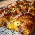 Imagine cutting into the golden-brown crust, layers cascading apart like a soft, warm hug. The first forkful offers a delightful crunch, quickly followed by the creamy softness of the eggs blending perfectly with the croissants. The flavor dances upon your palate—savoury, rich, and utterly satisfying—while subtle hints of herbs whisper of more than just a simple breakfast; it’s an experience that beckons you to linger at the table. Whether it’s a lazy weekend brunch, a festive holiday gathering, or a cozy celebration at home, this Croissant Bake Breakfast Casserole is undeniably a star player that shines bright in the morning.