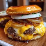- Assemble the burger: Grab a caramelized onion slice, place a cheesy patty on top, add sauce, and crown with another onion slice.