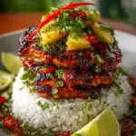This dish isn’t just a recipe; it’s an invitation to relish the vibrant flavors of Hawaii right in your kitchen. The succulent chicken thighs marinated in a luxurious blend of soy sauce, brown sugar, and pineapple juice infuse each bite with a delightful sweetness that beckons you for another forkful. The freshness of the pineapple mingles harmoniously with the crispness of bell peppers, enhancing not only the flavors but the overall texture of the stack.