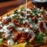 The golden, charred edges of the chicken shimmer enticingly as they catch the light, hinting at the warmth and depth of the spices that have soaked into the meat. You hear a satisfying crunch as you load your pita with fresh cucumbers and tomatoes, their coolness playing perfectly against the warmth and spices of the chicken. The creamy garlic sauce drizzles over the top, binding the flavors in a luxurious embrace. Every component in this dish weaves together, inviting your senses to celebrate the vibrant, delicious magic of homemade shawarma.