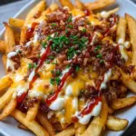 Indulging in a plate of sizzling hot fries, smothered in savory cheese, sweet caramelized onions, and a tantalizing sauce, takes your taste buds on a blissful journey. Imagine taking that first, glorious bite—the crunch of each golden fry gives way to a warm, creamy blanket of melted cheese, while the rich flavors of the special sauce dance on your palate. It’s comfort food at its ultimate peak, transforming a simple potato into a culinary experience that whispers of deep-fried perfection.