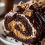 Irresistible peanut butter cup chocolate roll dessert with rich chocolate and creamy peanut butter