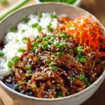 Picture yourself scooping this delectable pulled pork into fluffy bao buns or onto a bed of sticky rice, each bite revealing the perfect harmony of sweet, spicy, and umami flavors. The thick, luscious sauce clings to the tender shreds of pork, offering that satisfying, saucy richness, while the subtle crunch of fresh veggies on the side adds a delightful contrast. It’s comfort food at its finest, effortlessly elevating family dinners, game-day gatherings, or casual get-togethers with friends. The beauty of this dish lies not just in its taste, but also in its simplicity — set it, forget it, and let your slow cooker do the magic!