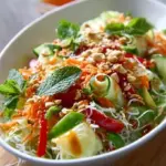 As you prepare this delightful dish, the kitchen fills with the aromatic scent of freshly grated ginger mingling with the nutty richness of sesame oil. You can practically hear the vibrant crunch of fresh cabbage and the crisp snap of carrots and cucumbers as you toss them together. Each ingredient not only contributes to the beautiful mosaic of colors but also offers a unique texture that creates an utterly irresistible salad experience. Every bite of refreshing mint and zesty cilantro enhances the dish, making it a culinary celebration that’s simple yet extraordinary.