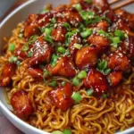 Imagine twirling your fork through glossy noodles, each strand capturing glossy flecks of sticky sauce, bursting with savory notes of garlic and a hint of spice. The chicken, marinated to perfection, turns succulent with just the right amount of caramelization. And then there are those subtle crunches of topping—green onions and perhaps a sprinkle of sesame seeds—that elevate the entire experience. It’s not just dinner; it’s a celebration of texture and flavor that warms your heart and satisfies your soul.
