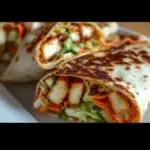 As you roll up the tortilla, you can already envision this dish gracing your table for lunch, a picnic, or a casual dinner with friends. The vibrant colors of the lettuce, the bright orange shards of carrots, and the refreshing green cucumber fill your plate with a visual feast. Each element plays its part perfectly, harmonizing to create a wrap that’s not just a meal but an experience—a moment to savor amidst the hustle and bustle of everyday life.