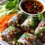 Delicious Thai Basil Beef Rolls filled with ground beef and fresh vegetables, offering a vibrant culinary experience with each bite.