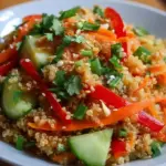 A vibrant Thai Quinoa Salad bursting with flavors, featuring nutty quinoa, fresh vegetables, and a creamy peanut dressing.